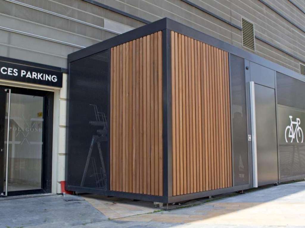 Fourniture et pose d’un abri vélo sécurisé collectif de 24 places avec contrôle d’accès et éclairage à détection pour Syndexia, le syndic du Centre Commercial le Polygone à Montpellier (34).