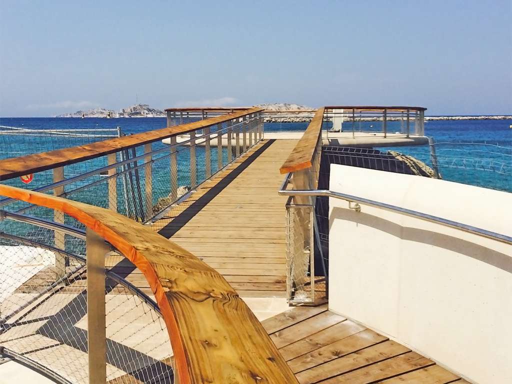 Création d'un ponton, structure métallique avec platelage bois ainsi que garde-corps en inox 316L
