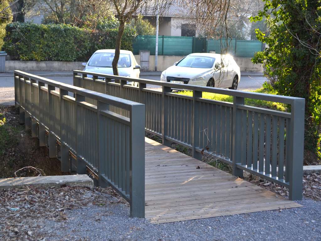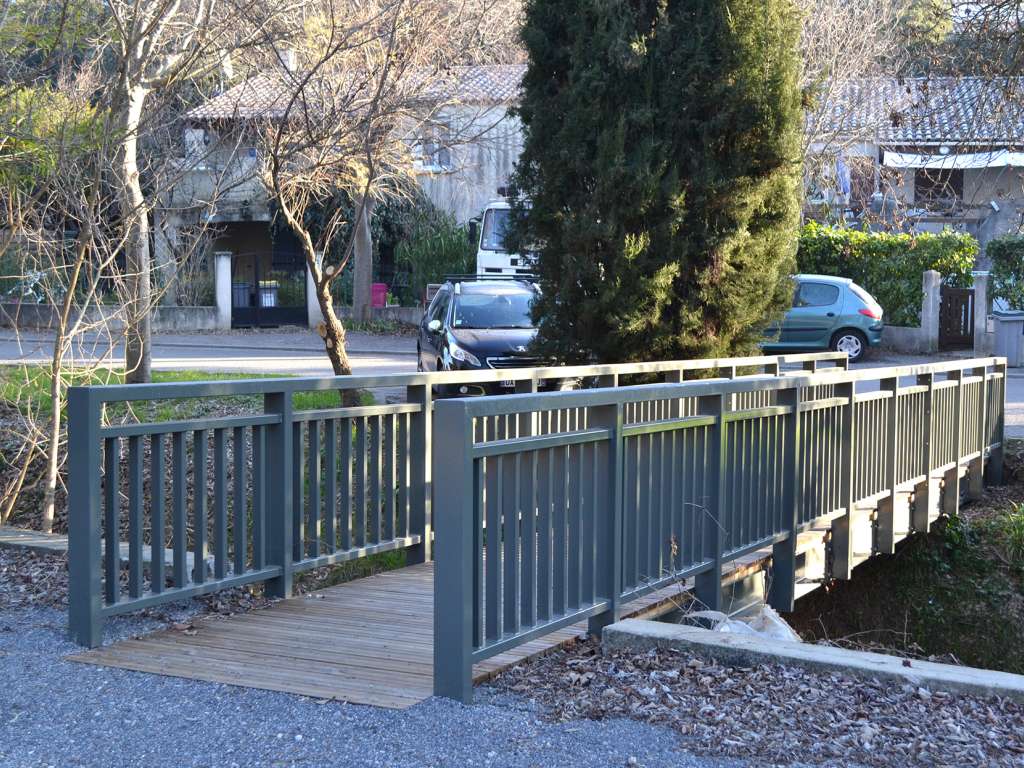 Cet aménagement a été réalisé avec la mairie de ST GELY DU FESC (34). Une passerelle en bois et acier a été posée.