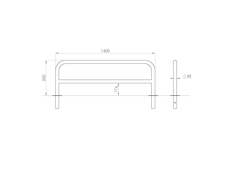 Appui vélo en tube Ø 48.3 mm cintré avec sous-lisse et collerette cache scellement (par default)