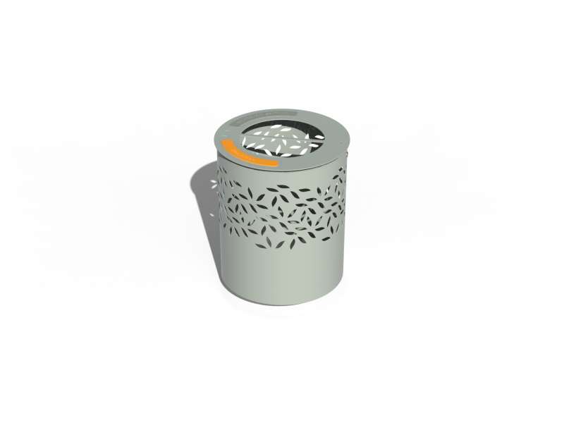 Corbeille cylindrique biflux en tôle ajourée, avec couvercle pivotant et ouverture divisée en 2 parties pour le tri des ordures ménagères et des déchets recyclables avec identification par plaque de coloris différent, équipée de 2 anneaux porte sac avec tampons bloc sac (sac non fourni)
