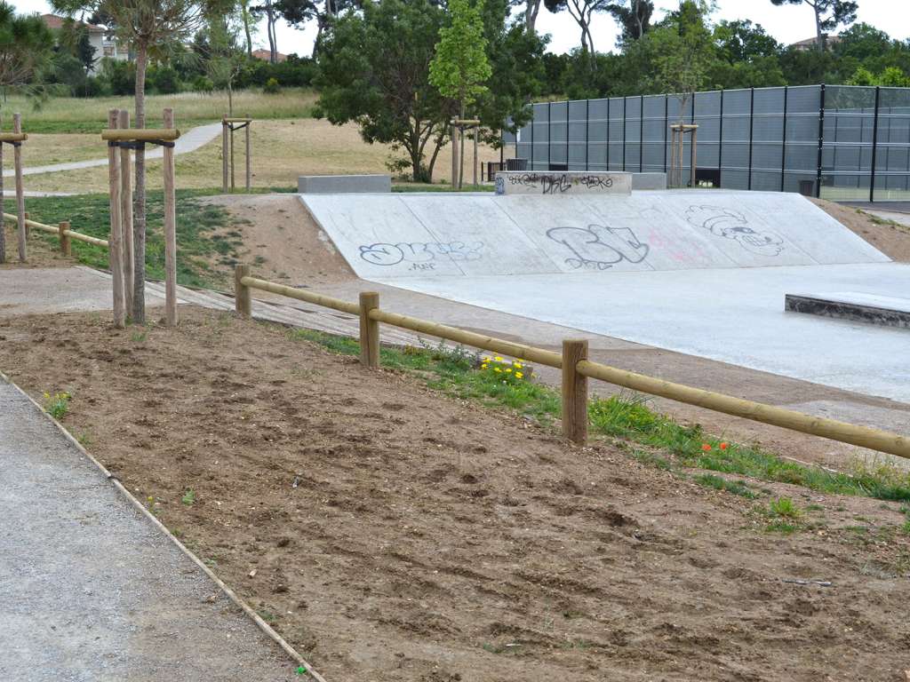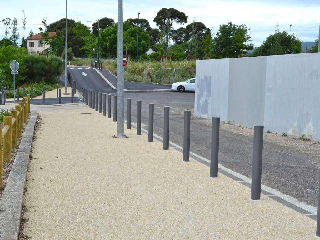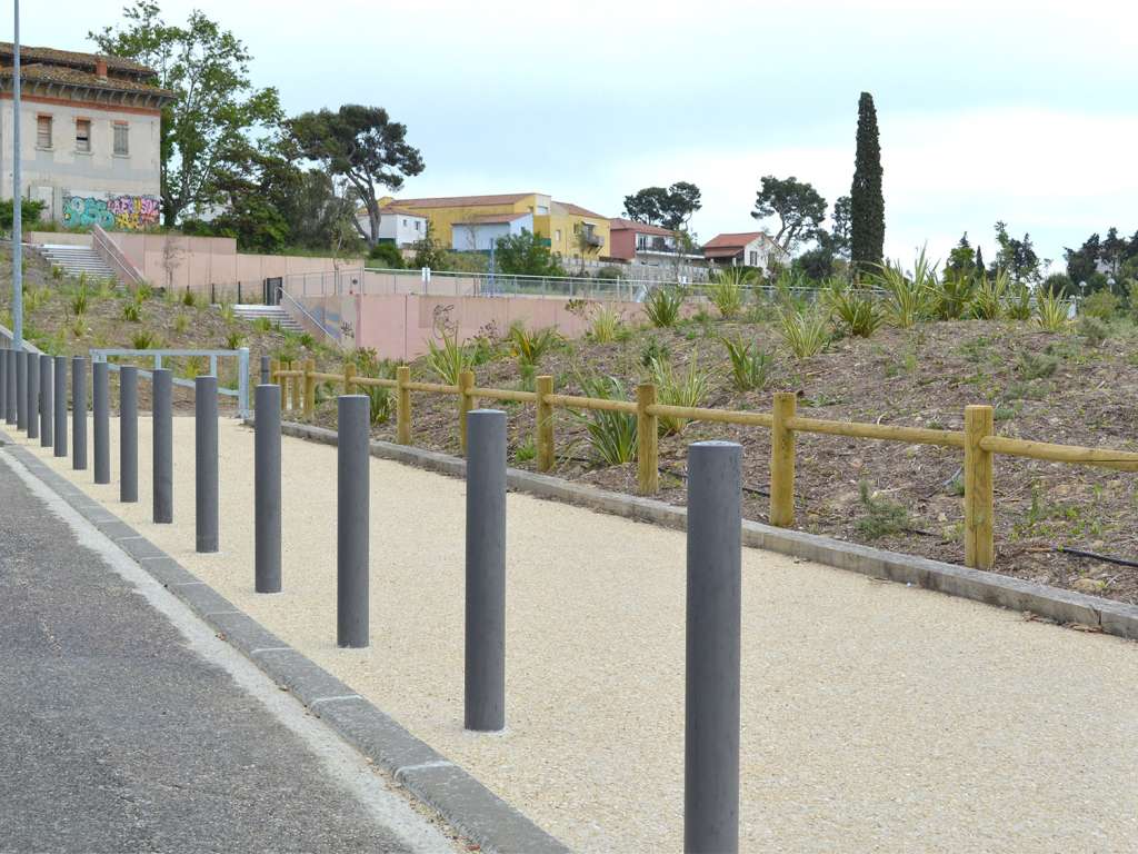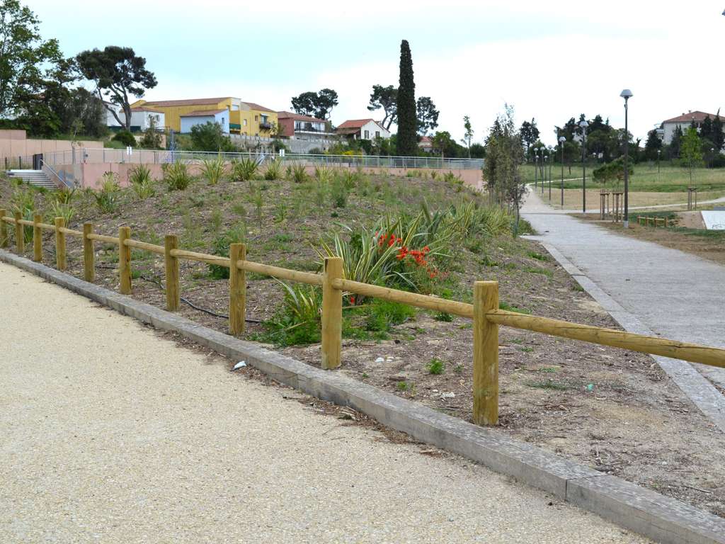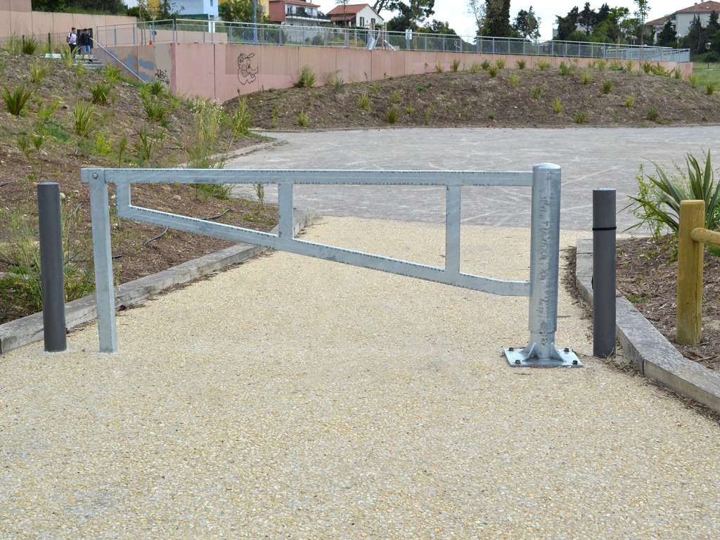 aménagement du parc Athéna à Marseille, Garde-corps en bois, Barrière pivotante en acier galvanisé à chaud