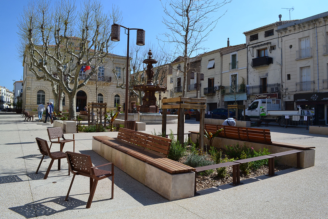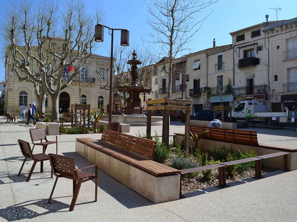 Réaménagement de la place Aristide Briand dans le centre ville de Mèze.