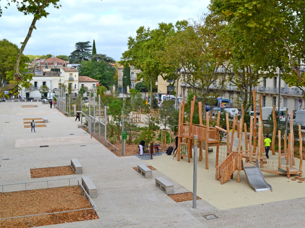 Réaménagement de la place Max Rouquette dans le secteur historique des Arceaux Peyrou à Montpellier.