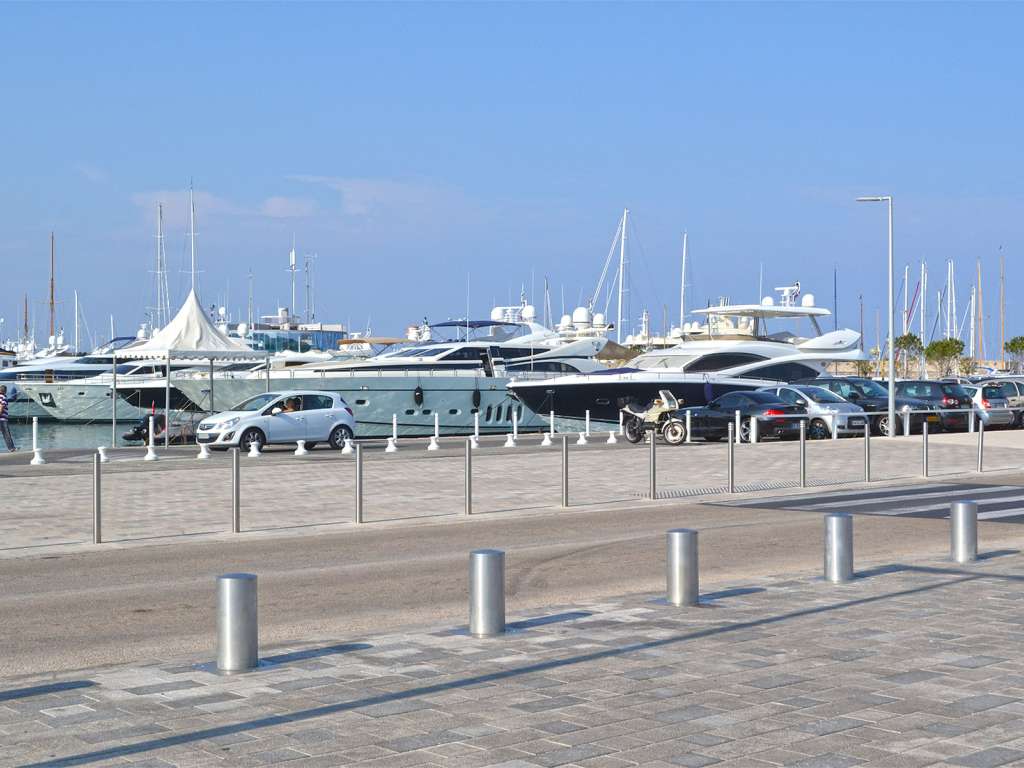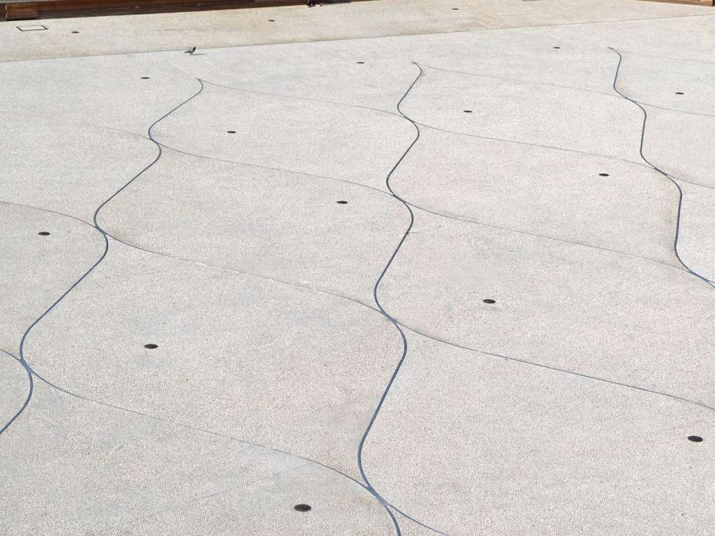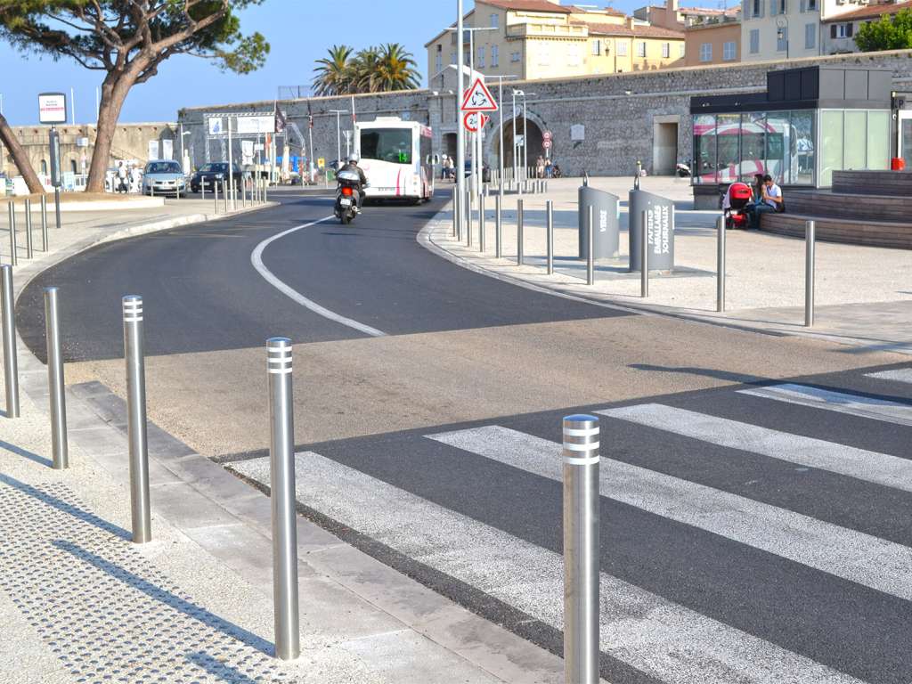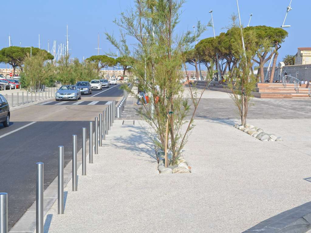 aménagement de la place par mailles inox insérées au sol, avec boites d'ancrages avec capuchon laiton